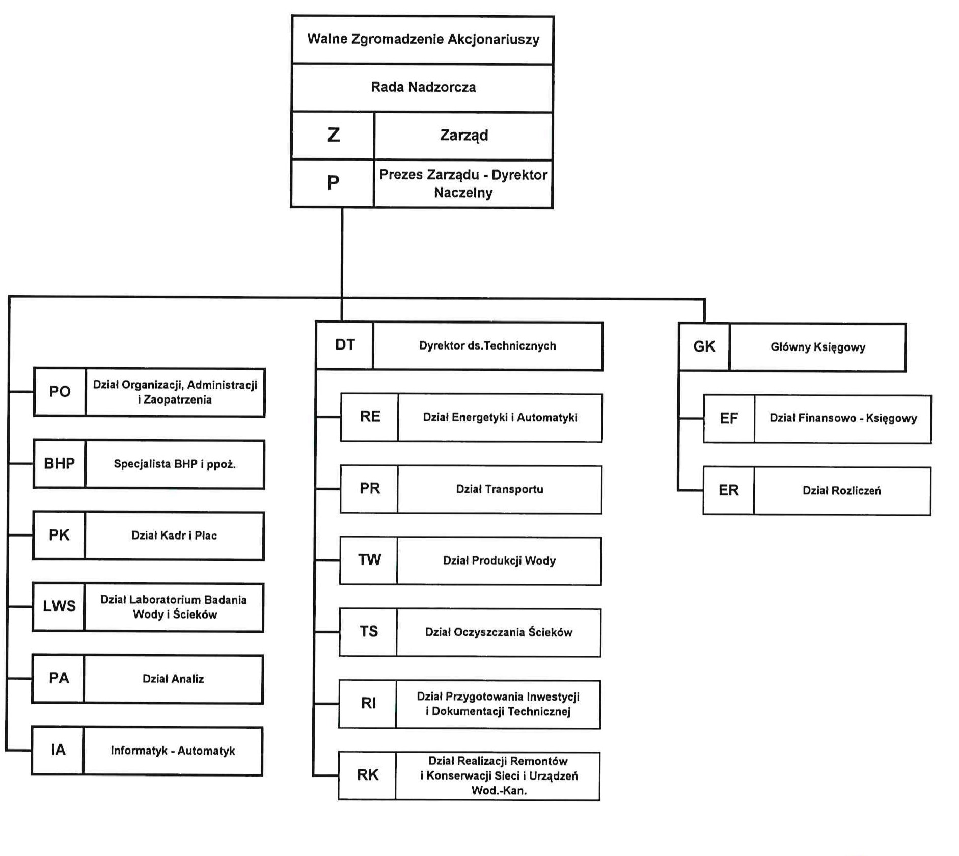 Organizację wewnętrzną funkcjonowania Spółki (strukturę organizacyjną) ustala Zarząd zgodnie z obowiązującymi przepisami, w sposób zabezpieczający jej prawidłowe funkcjonowanie. Odzwierciedleniem wewnętrznej organizacji jest Regulamin organizacyjny Spółki wraz ze schematem organizacyjnym (stanowiącym integralną część Regulaminu) ukazującym w sposób graficzny model struktury organizacyjnej z podziałem na: