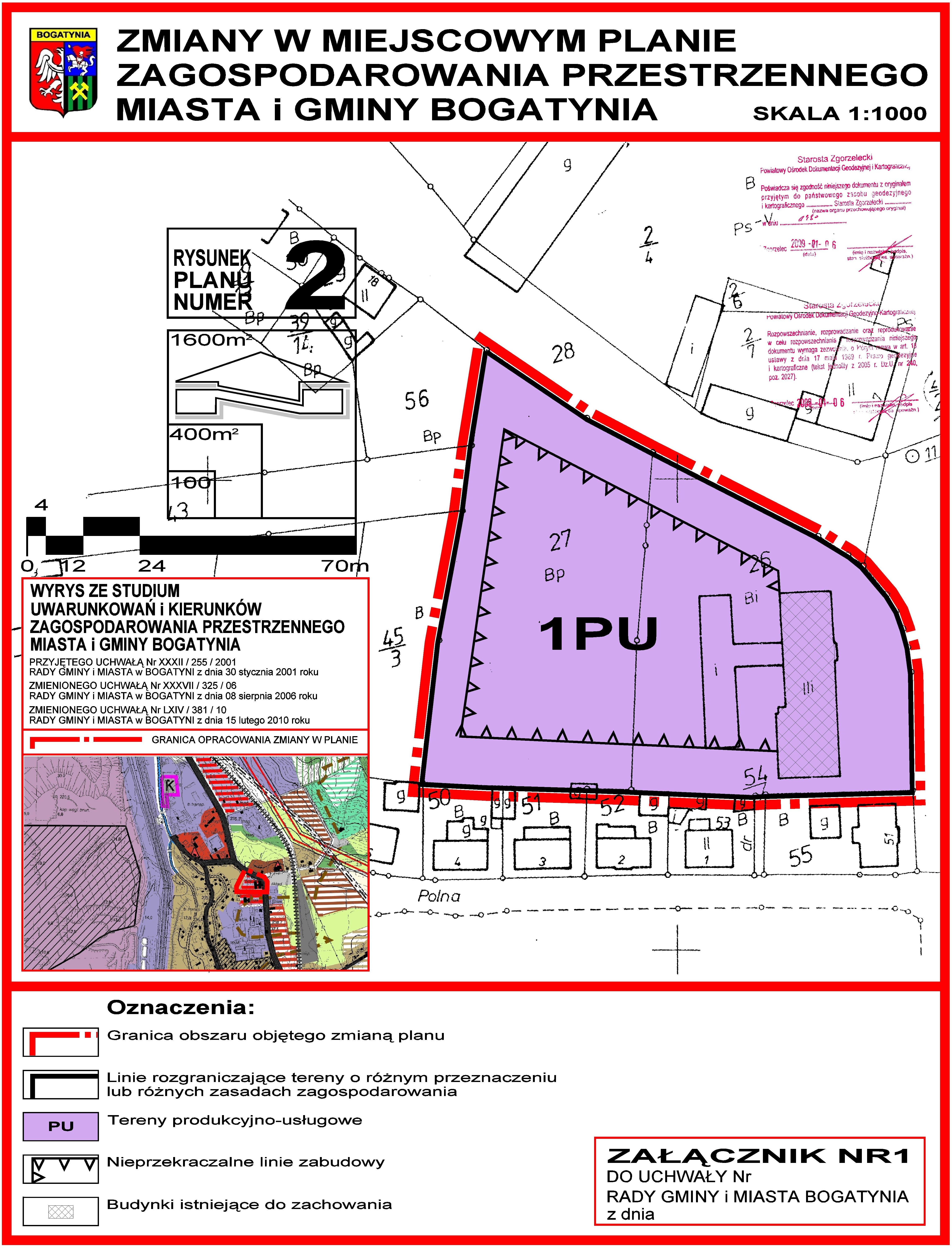 1) załącznik nr 1 – rysunki planu od nr 1 do nr 10, sporządzone na mapach zasadniczych w skali 1:1000 i 1:2000, stanowiące integralną część planu,