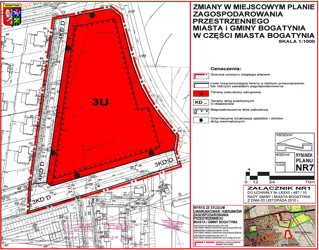 Skrócony opis: Uchwała Nr LXXXII/487/10 Rady Gminy i Miasta Bogatynia z dnia 3 listopada 2010 roku w sprawie uchwalenia zmian w miejscowym planie zagospodarowania przestrzennego miasta i gminy Bogatynia w częśc