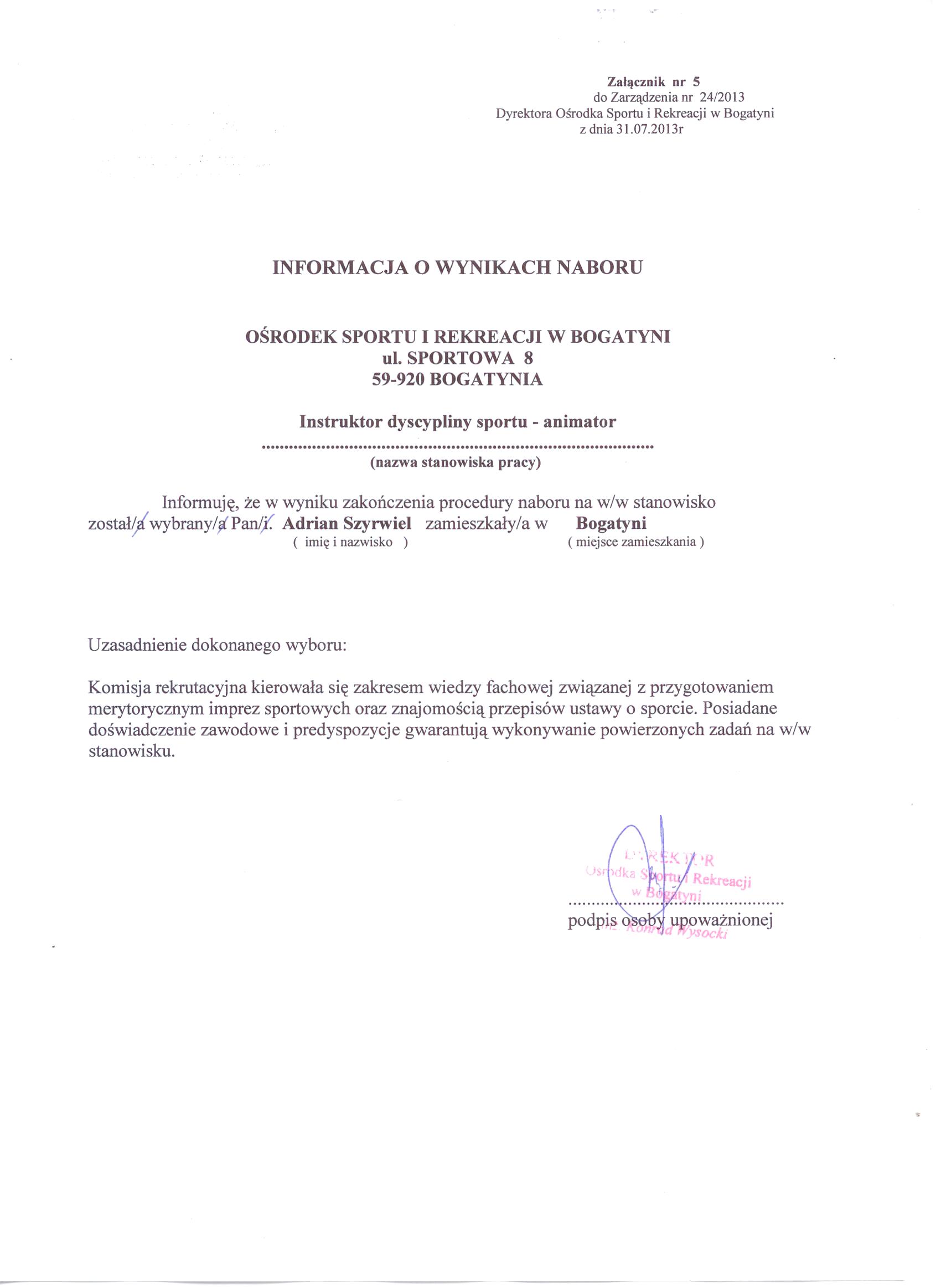| Nazwa dokumentu: | informacja o wynikach naboru instruktor dyscypliny sportu-animator |