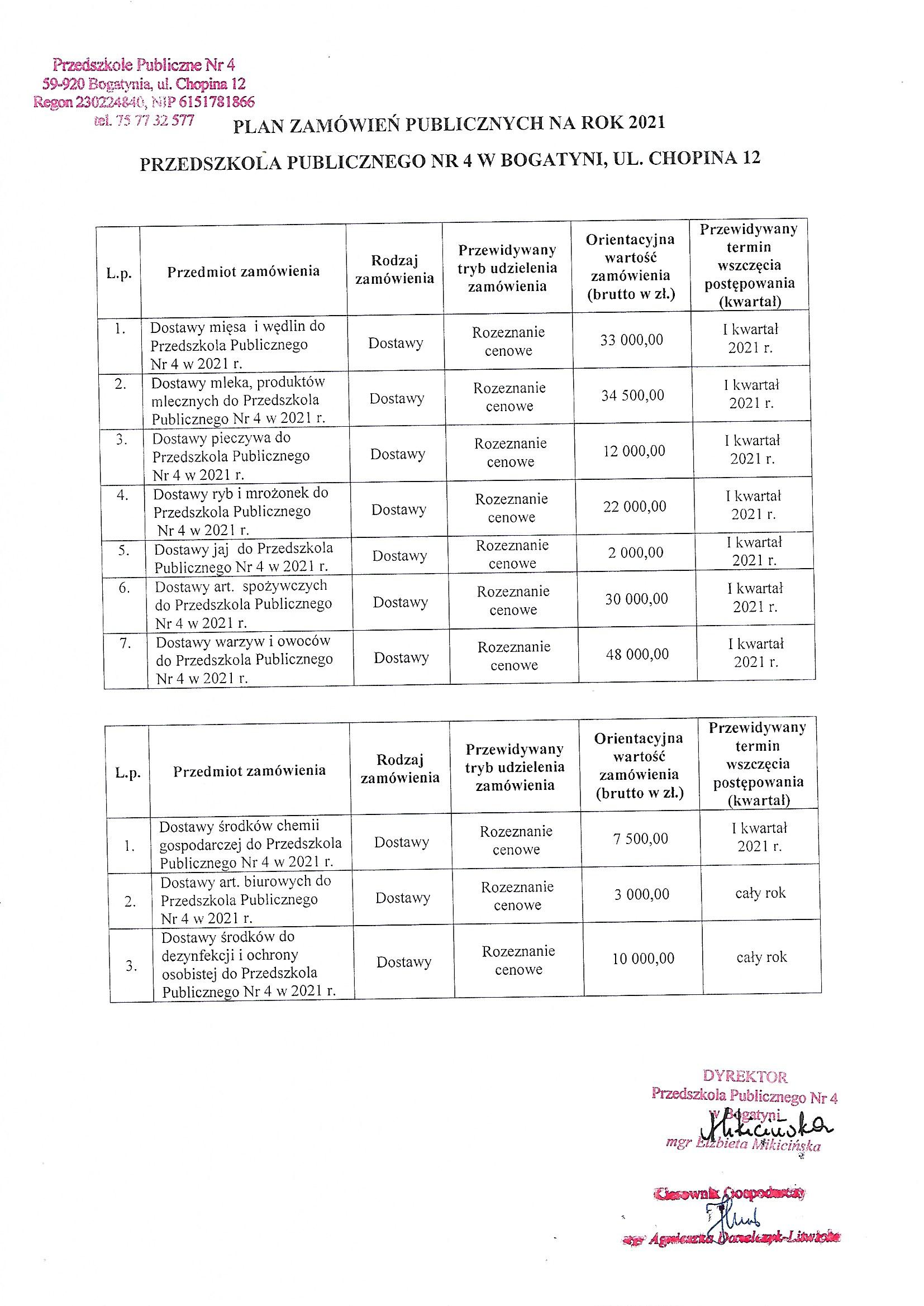 | Nazwa dokumentu: | Plan zamówień publicznych |